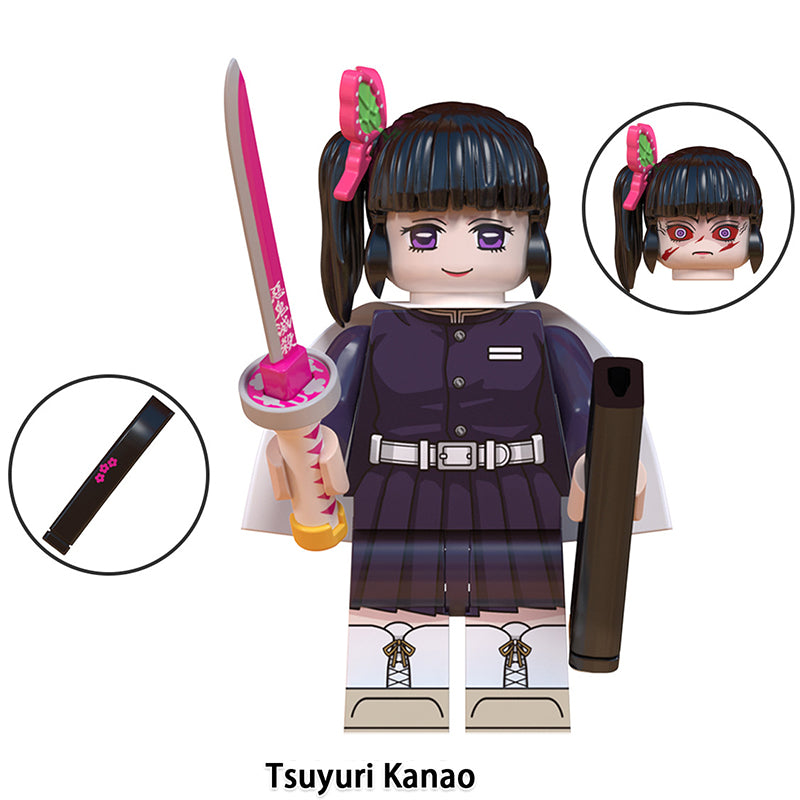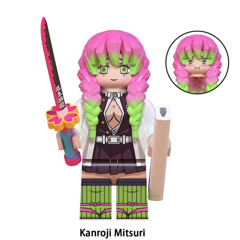 This Demon Slayer (DS) minifigure set includes Genya Shinazugawa, Gyomei Himejima, Kanao Tsuyuri, Mitsuri Kanroji, Muichiro Tokito, Obanai Iguro and more—LEGO-compatible custom brick figures crafted for collectors and themed builds.