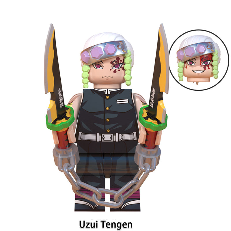 Genya Shinazugawa (as known for his Nichirin Katana and unique combat style), Gyomei Himejima (as known as the Stone Hashira), Kanao Tsuyuri (as known for her Flower Breathing style), Mitsuri Kanroji (as known as the Love Hashira), Muichiro Tokito (as known as the Mist Hashira), Obanai Iguro (as known as the Serpent Hashira), Sanemi Shinazugawa (as known as the Wind Hashira), Tengen Uzui (as known as the Sound Hashira, with his Nichirin Cleavers) – Demon Slayer (DS) Brick Minifigures (LEGO-Compatible Figures)