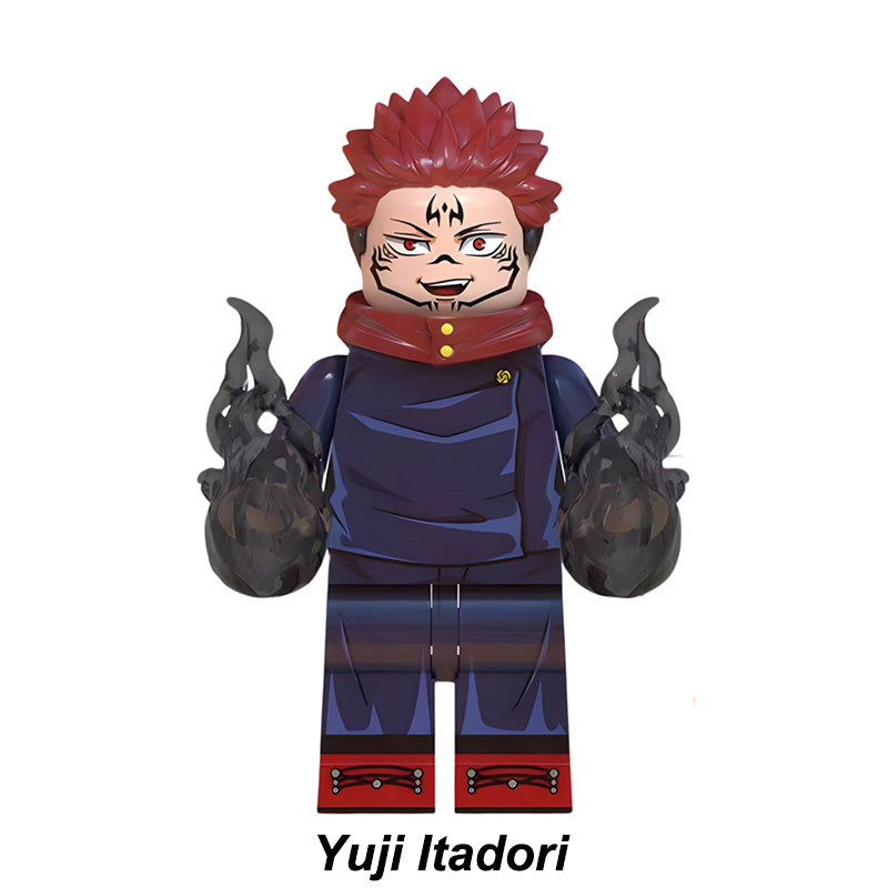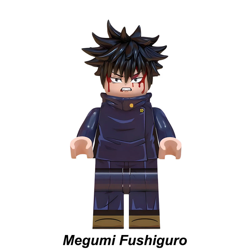 This Jujutsu Kaisen (JJK) minifigure set includes Yuji Itadori, Nobara Kugisaki, Megumi Fushiguro, Satoru Gojo, Suguru Geto and more—LEGO-compatible custom brick figures crafted for collectors and themed builds.