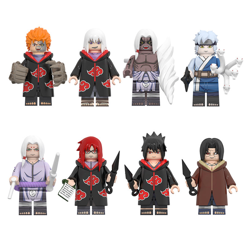 This Naruto minifigure set includes SSasuke, Mitsuki, Jūgo, Karin, Suigetsu, Itachi, Kimimaro, Kaguya and more—LEGO-compatible custom brick figures crafted for collectors and themed builds.